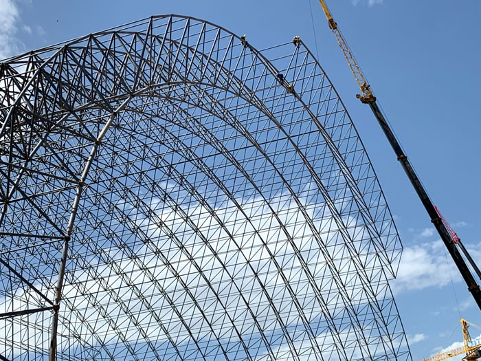 (2)网架加工前应对现场尺寸进行复测,确认无误后方可进行加工、安装;网架制作、运输、安装应遵守《空间网格结构技术规程》JGJ7-2010、《钢网架郴州螺栓球节点》JG/T 10-2009、《钢网架郴州螺栓球节点用高强度螺栓》 GB/T 16939-2016、《郴州钢结构郴州工程郴州施工规范》 GB50755-2012、《郴州钢结构郴州工程施工质量验收标准》 GB50205-2020。